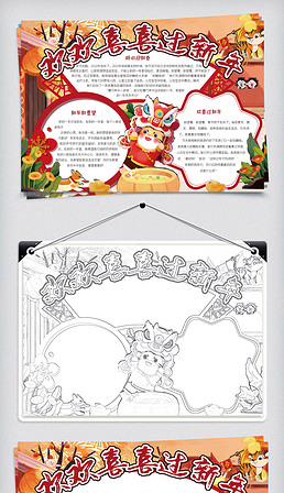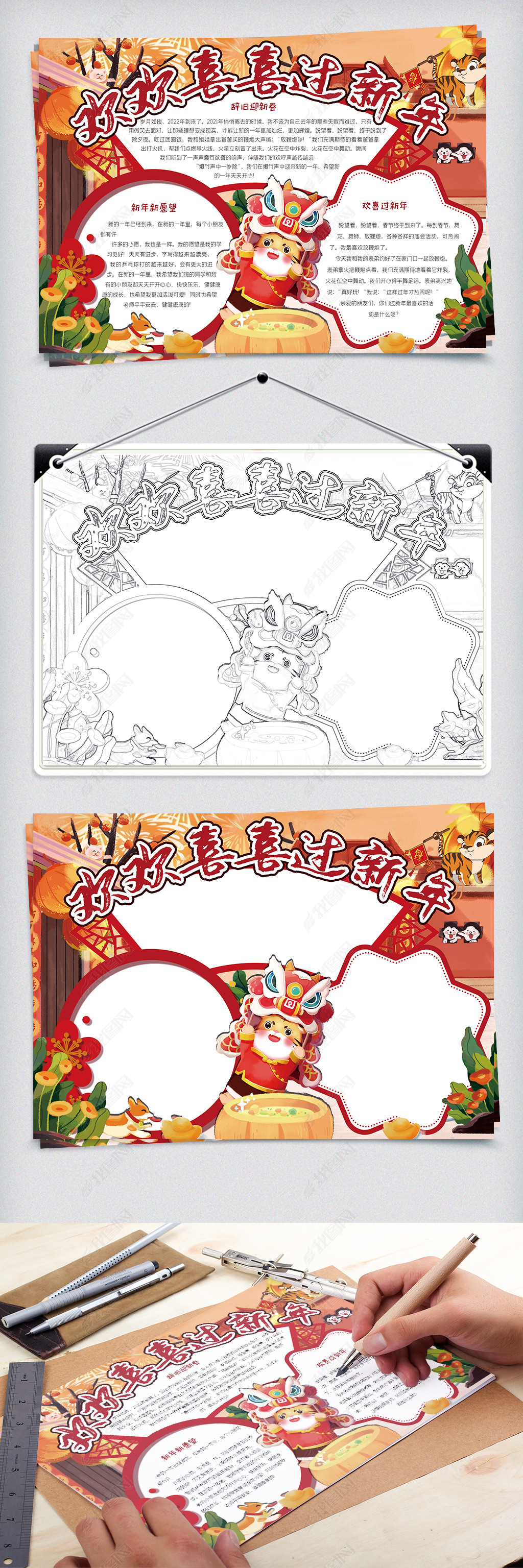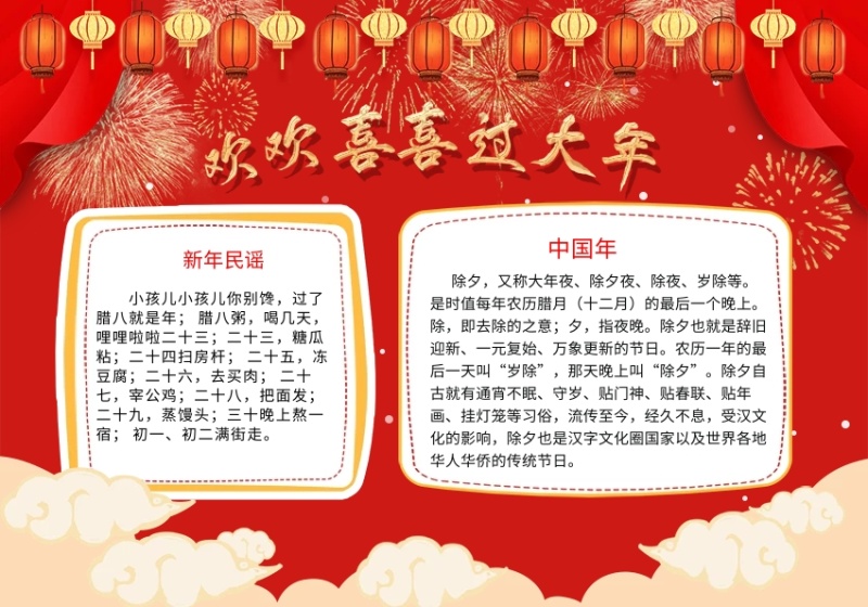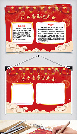 欢欢喜喜过大年手抄报专题模板-欢欢喜喜