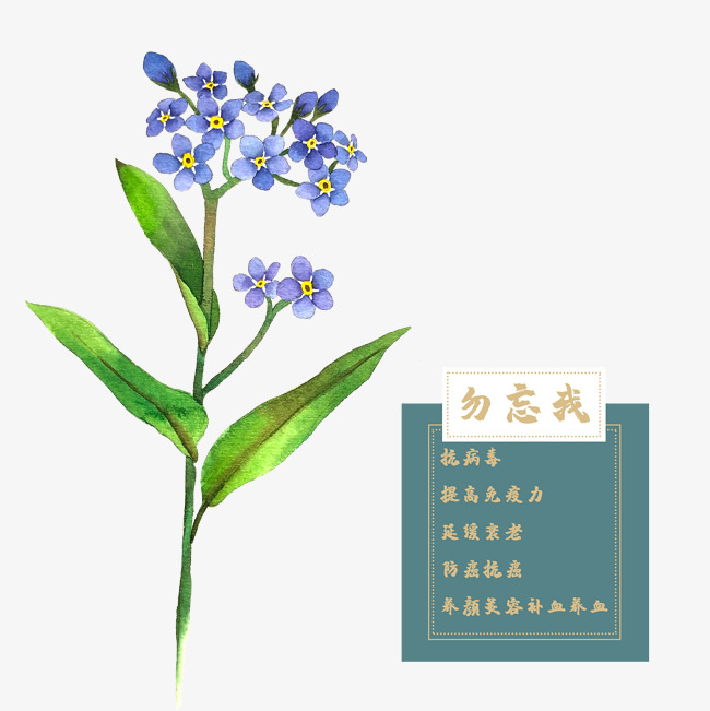 勿忘我花类中药材水彩植物素材图片免费下载_高清psd