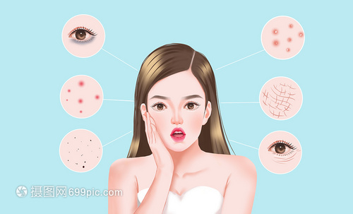 女性皮肤问题插画