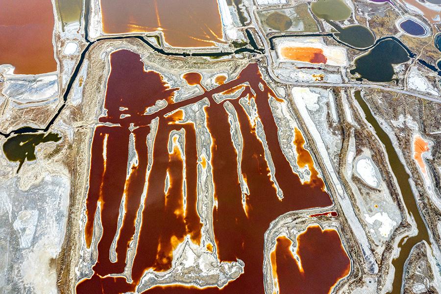 组图:鸟瞰运城盐湖 宛如巨型调色板