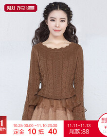 小清新2014秋装新款毛衣纯色收腰荷叶边