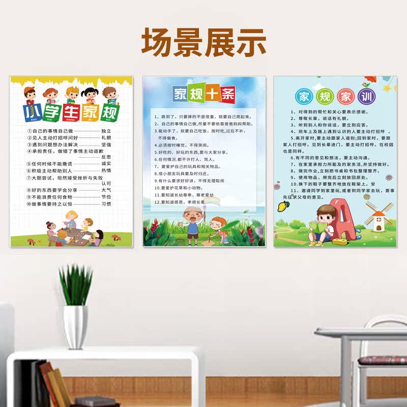 抖音儿童家规家训十条墙贴好孩子家风挂图房间装饰画家庭教育标语
