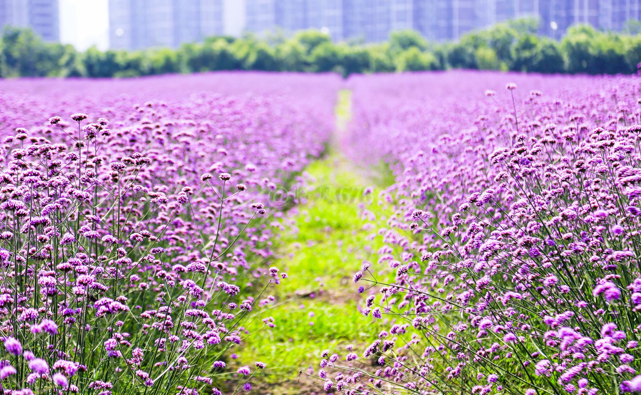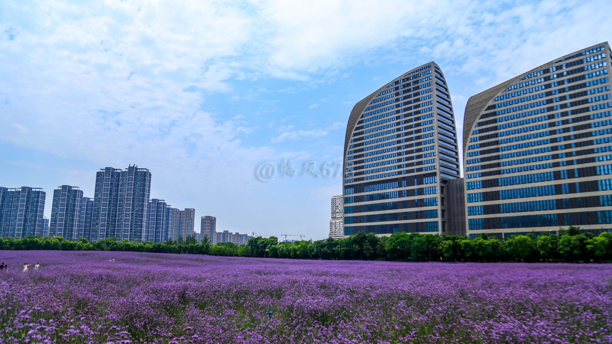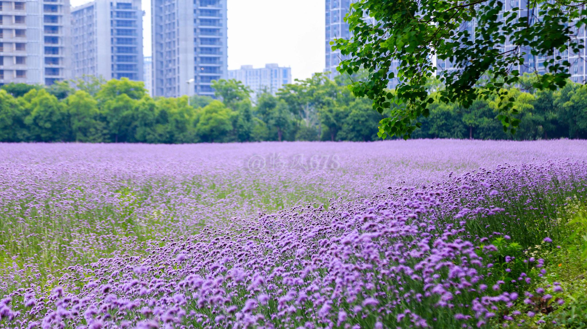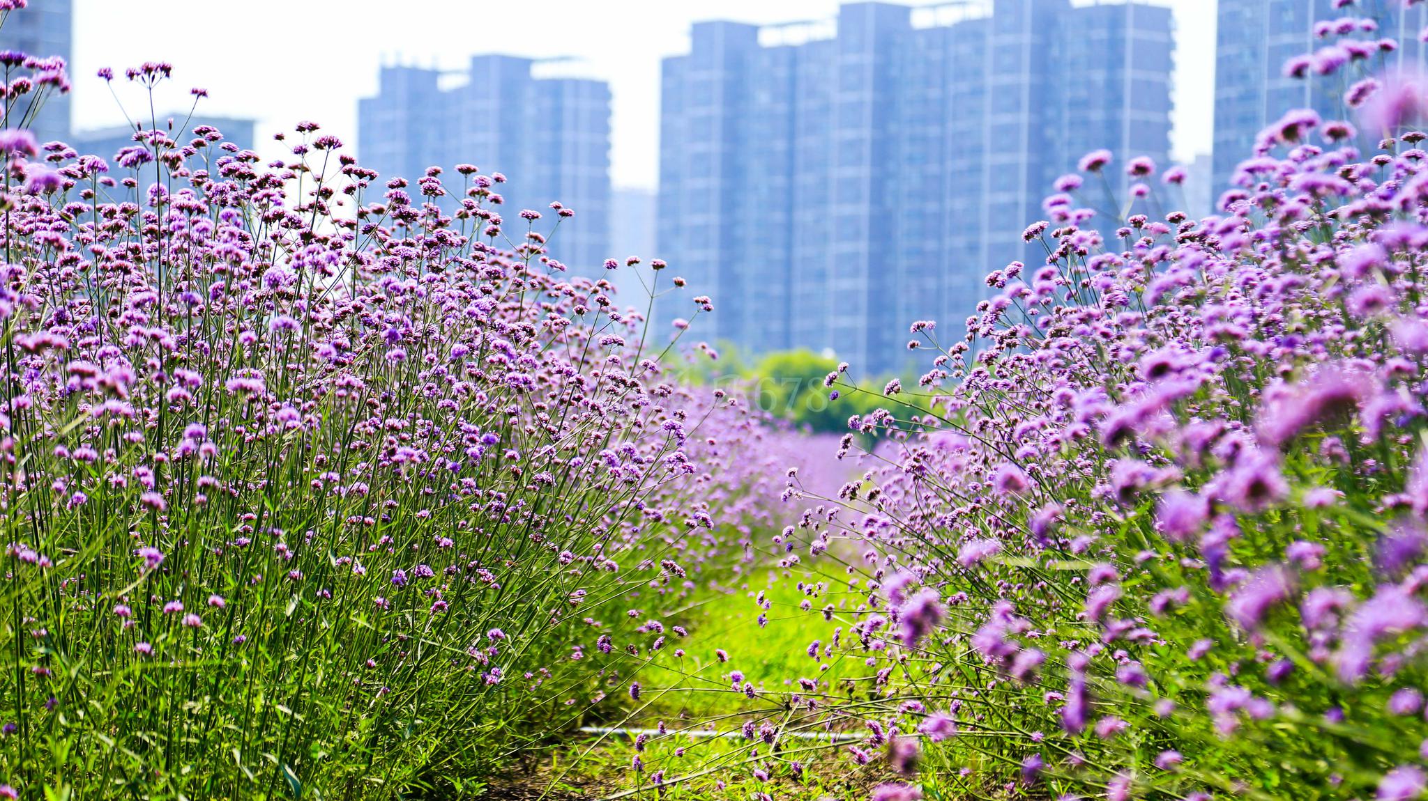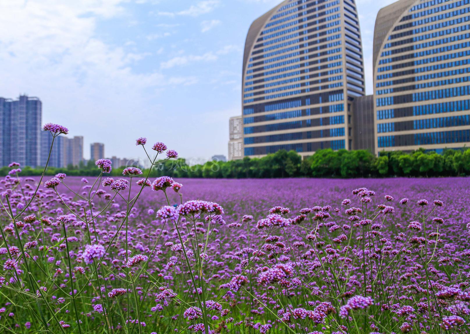 杭州钱江世纪城国博旁,网红柳叶马鞭草花海进入盛放期