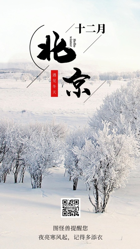 北京冬季简约雪景日签