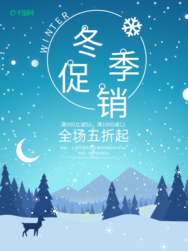 蓝色高端简洁冬季促销海报