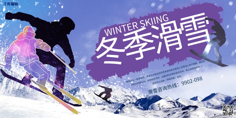 冬季滑雪清新创意简约展板