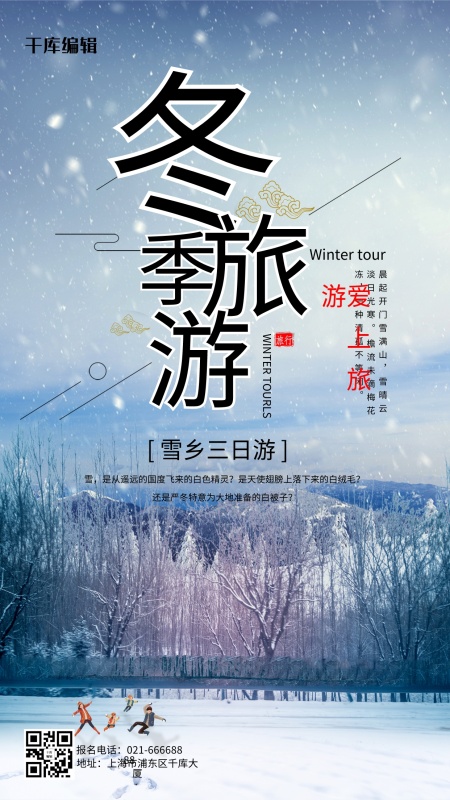 创意简约风格冬季旅游展板