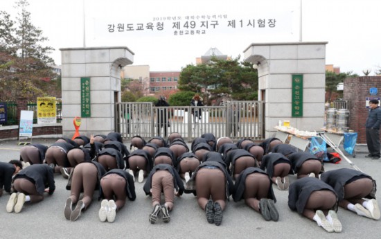 韩国高考拉开帷幕 学妹学弟下跪送学长_生活趣味_mm4000图片大全