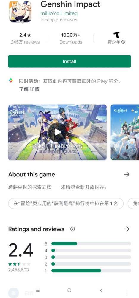 原神评分暴跌,周年庆版本差评如潮,米哈游
