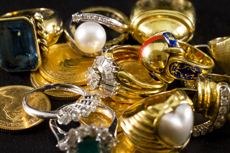 有珍贵的宝石的金戒指