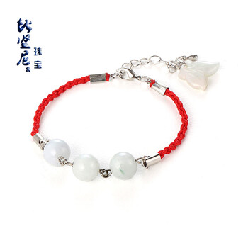 比坚尼 翡翠玉石手链 本命年红绳手串 附