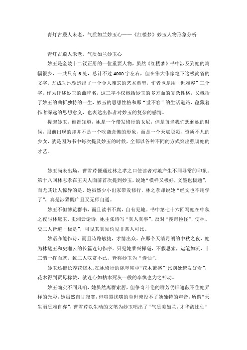 妙玉人物分析妙玉的身世红楼梦妙玉结局是