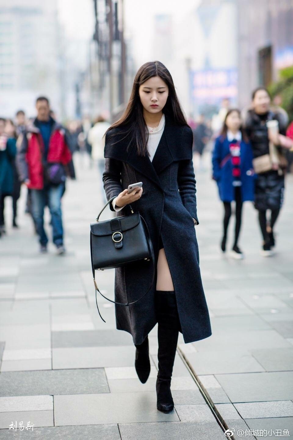 路人街拍,小姐姐脚上踩着一双丝袜长靴,很