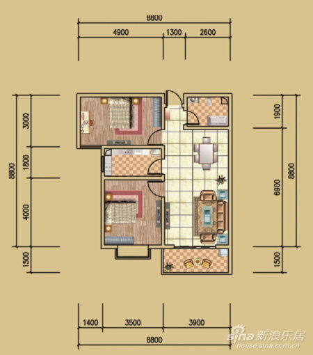 嘉禾一方B户型86.96平米 两室两厅一卫_频道-沧州_腾讯网
