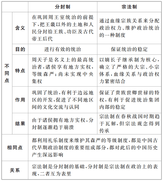 分封制与宗法制的比较