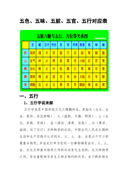 五行五色对照表