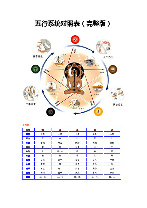 阴阳五行对照表(完整版)