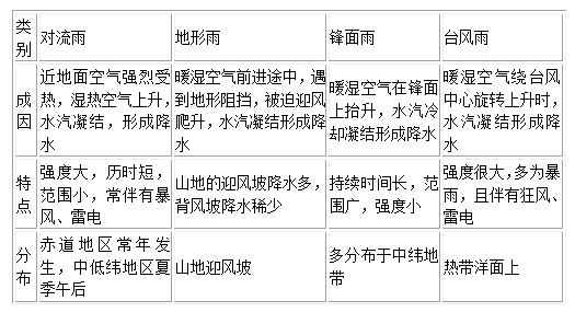 高考地理备考笔记:大气降水