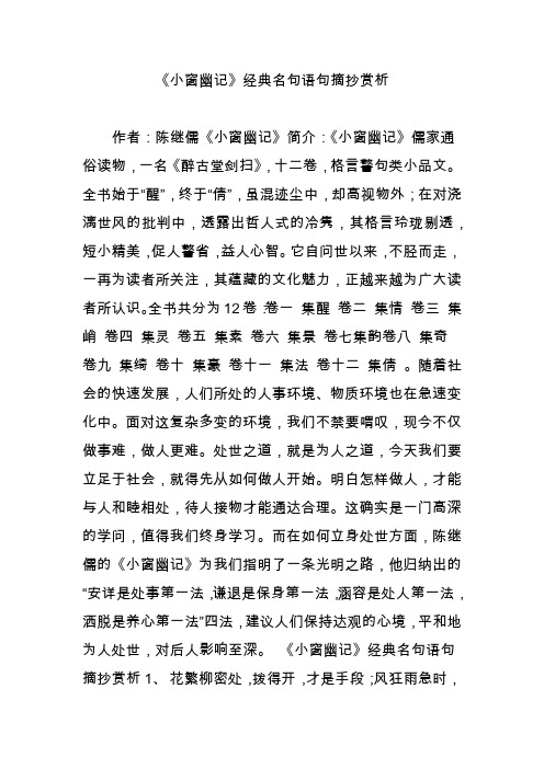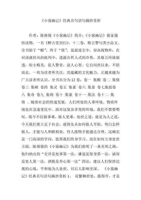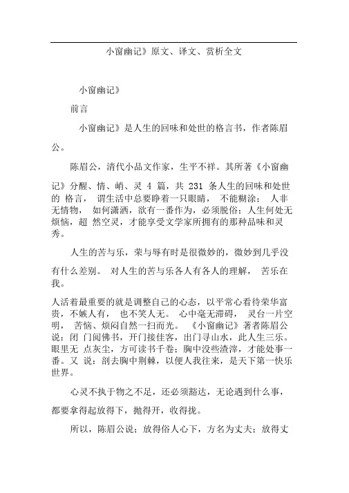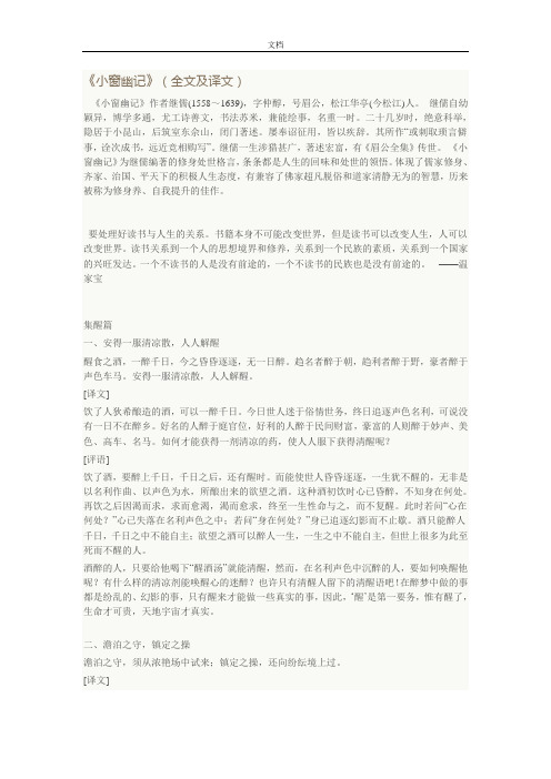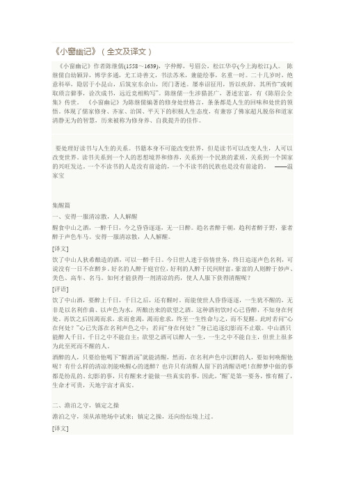 小窗幽记 全文及译文
