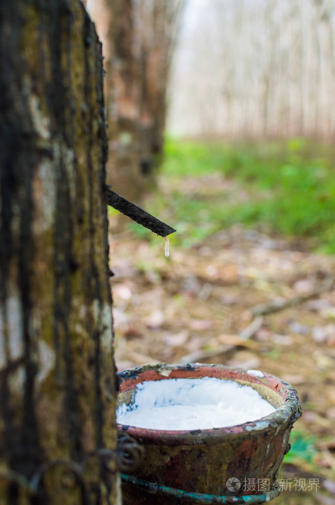 橡胶树(三叶胶brasiliensis)攻丝汁液图片素材