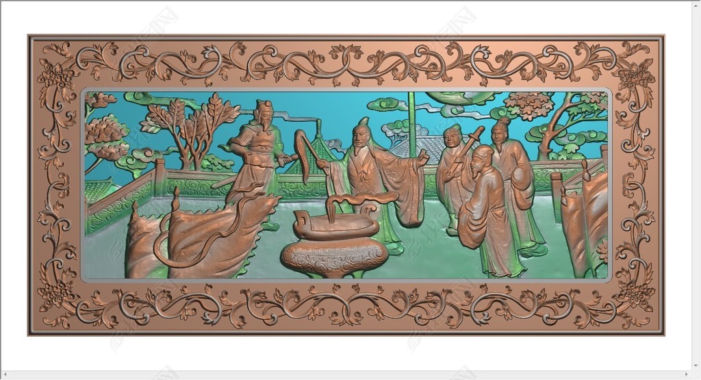 三国演义故事_孔明借东风深雕石雕图纸藏式