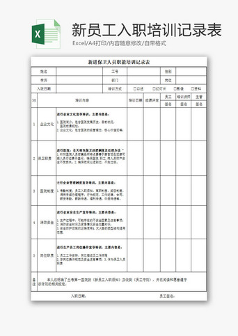 新员工入职培训表