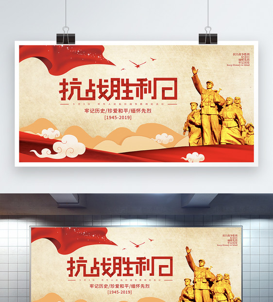 复古抗战胜利纪念日展板