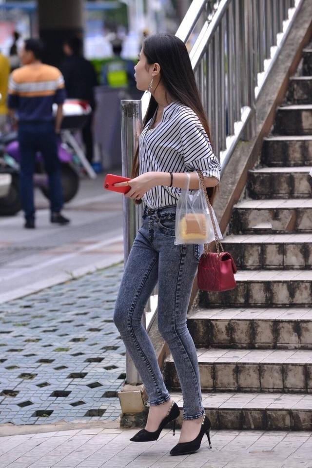 街拍:气质很好的紧身牛仔裤小姐姐,秀出