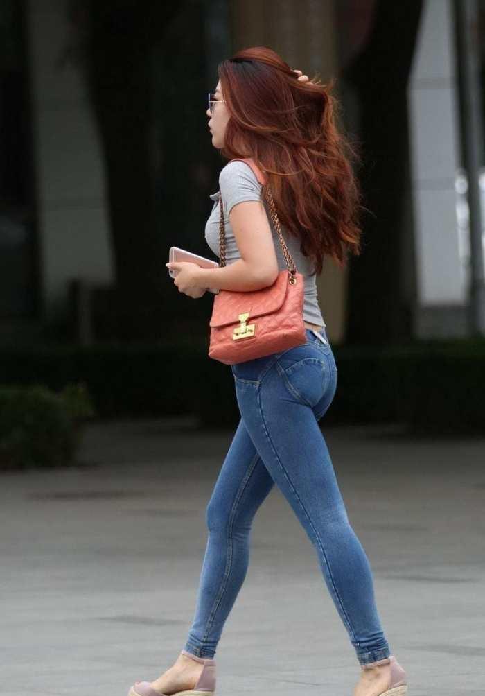 街拍: 紧身牛仔裤女郎妙曼多姿