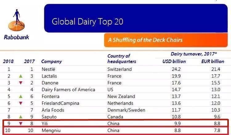 2018全球乳业20强公布,中国乳业双雄伊利