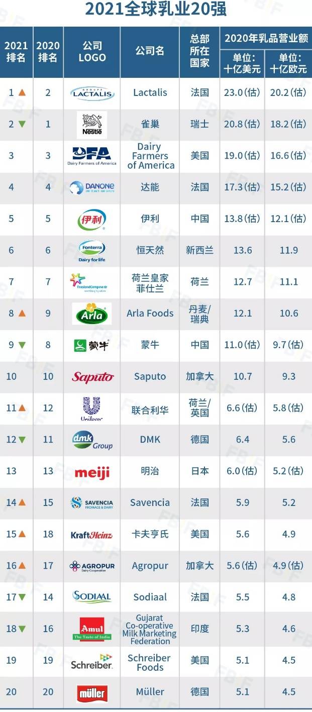 2021全球乳业20强出炉:全球第一易主,蒙牛