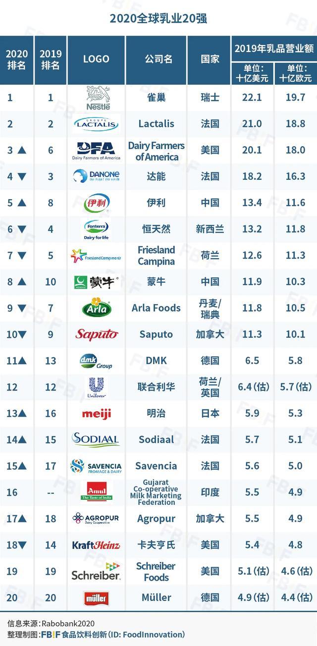 重磅 | 2020全球乳业20强出炉:伊利跃升第5,