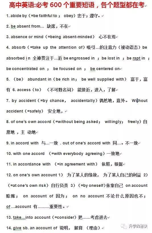 7-9年级英语重点短语大全,完型、作文不再愁!