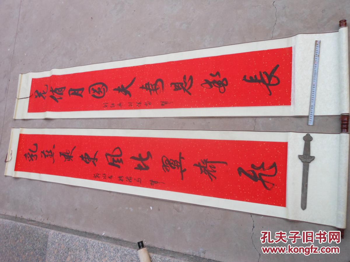 名人字画;对联;乳燕乘东风比翼齐飞 花俏月圆夫妻恩爱长199厘米*30厘米卷轴装裱喜庆贺联_好地方书店