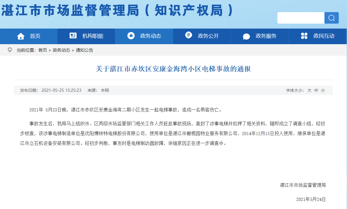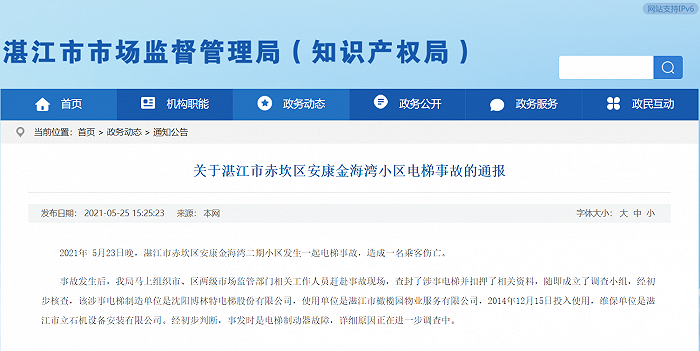 广东湛江一小区电梯突然加速撞向30层顶楼