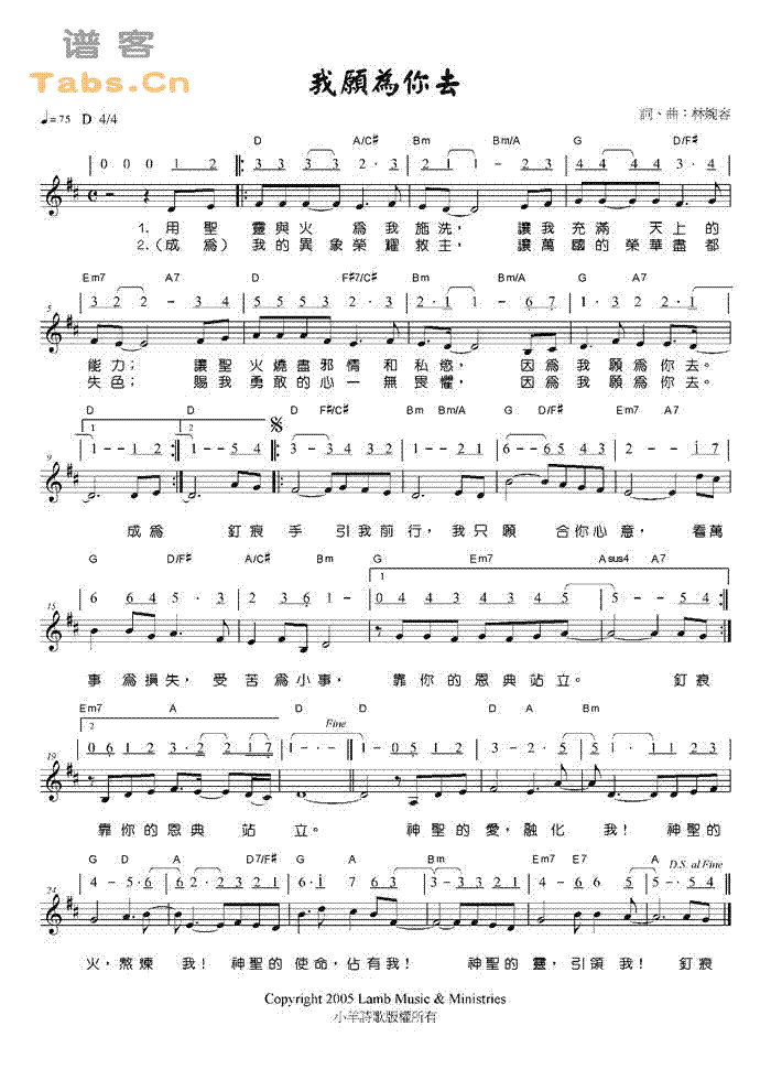 我愿为你去(基督教会乐谱)