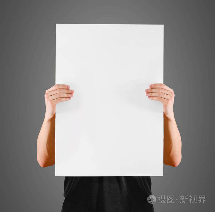 显示空白白色大 A2 纸,遮脸的人。单张 p
