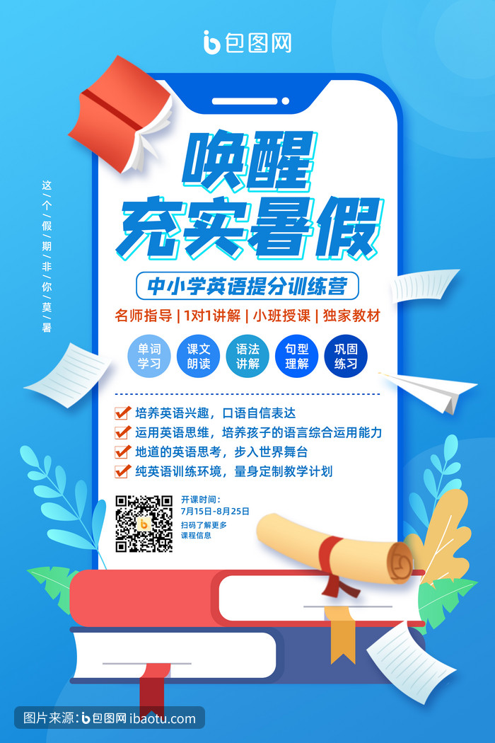 唤醒充实暑假暑期英语培训海报