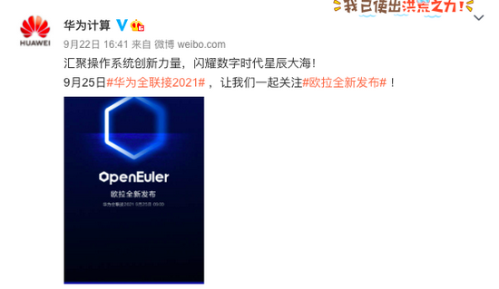 华为:openEuler 欧拉操作系统将于 9月25 日