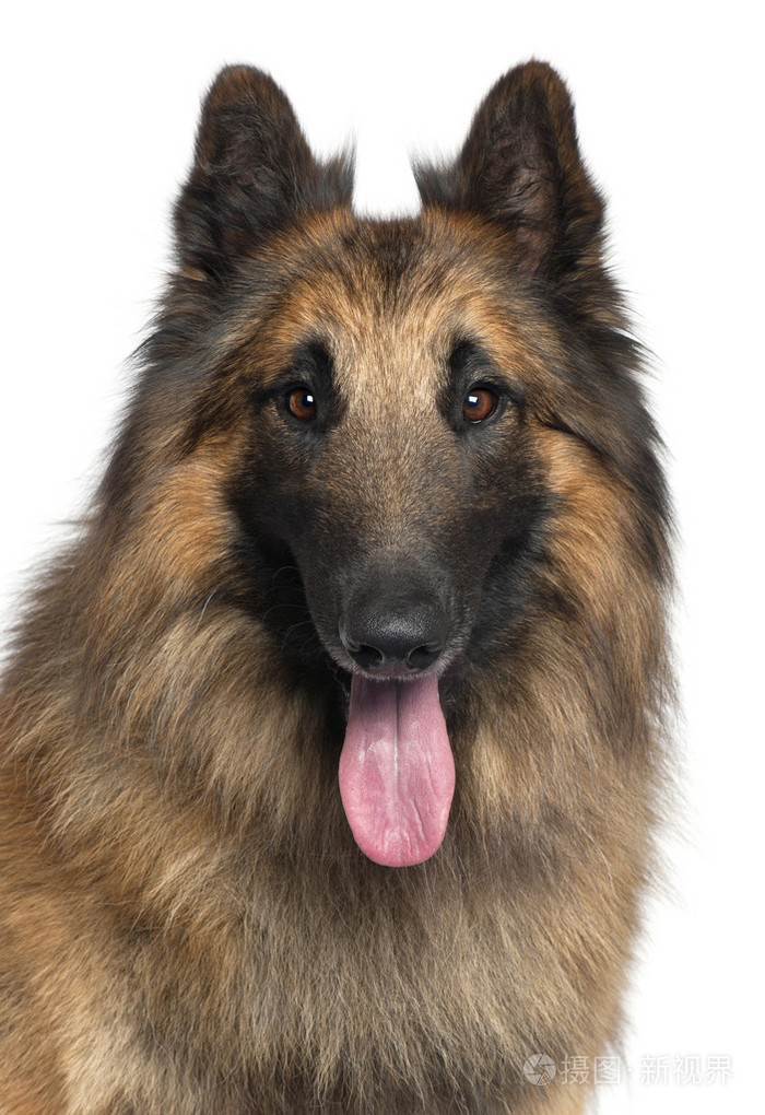 比利时牧羊犬或 tervuren,2 岁,在白色背景前的特写