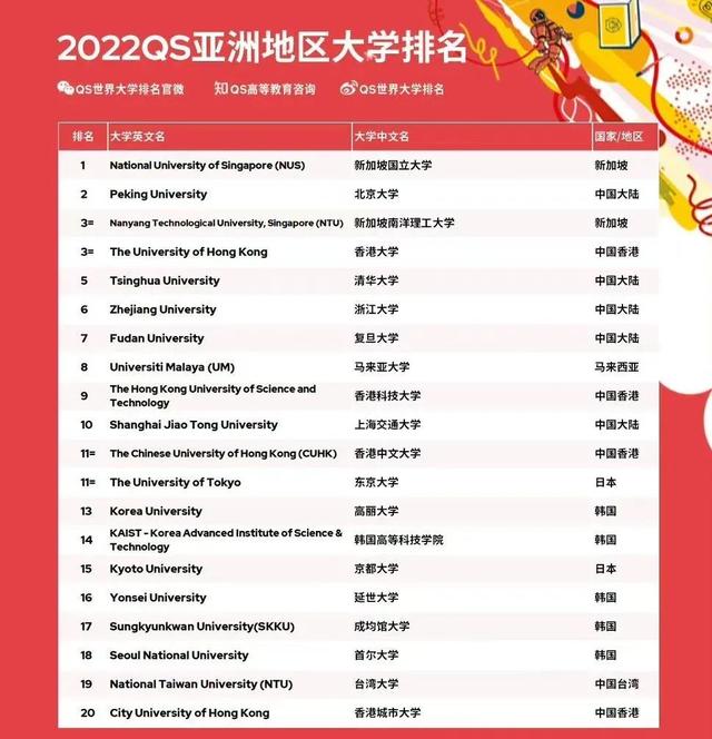 2022 QS 亚洲大学排名发布,新加坡双子星继续
