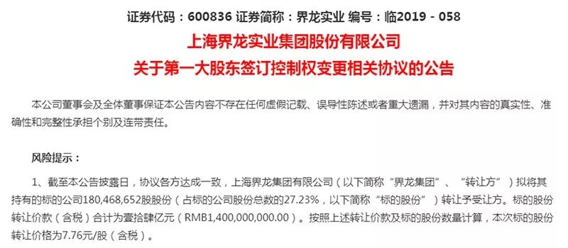 [天眼]界龙实业被通报:控股股东\"借\"账户