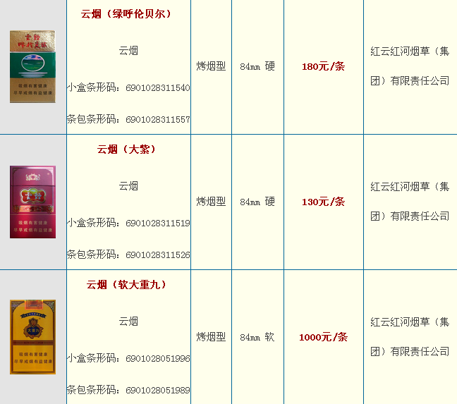 云烟香烟 香烟价格表 真伪鉴别 香烟照片