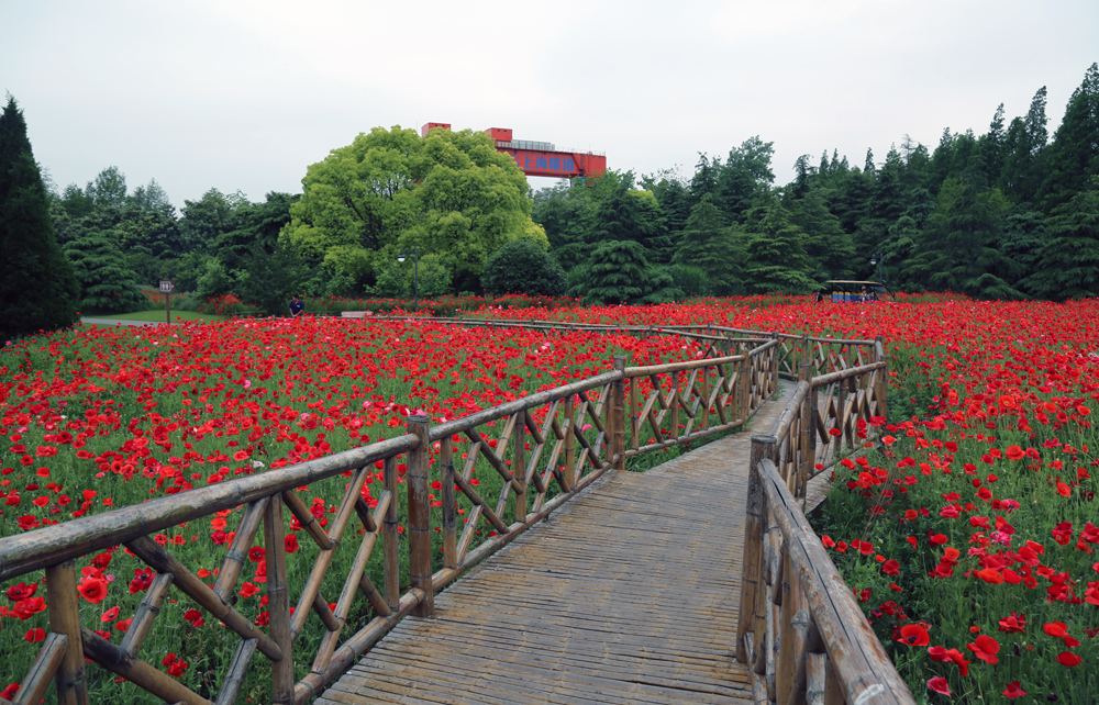 上海滨江森林公园\"虞美人\"红透大地