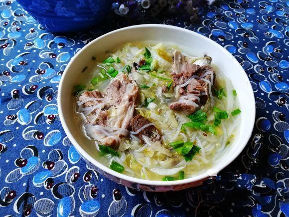 素炒平菇,酱香花蛤,扇骨酸菜粉条汤的做法