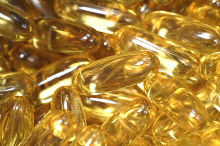 鱼油胶囊在白色背景上。软凝胶胶囊