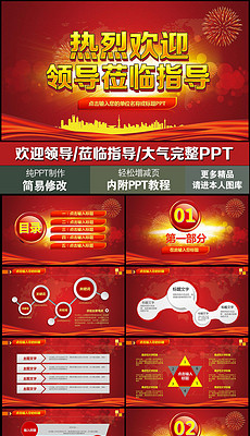 2018 红色大气热烈欢迎领导莅临工作指导视察PPT