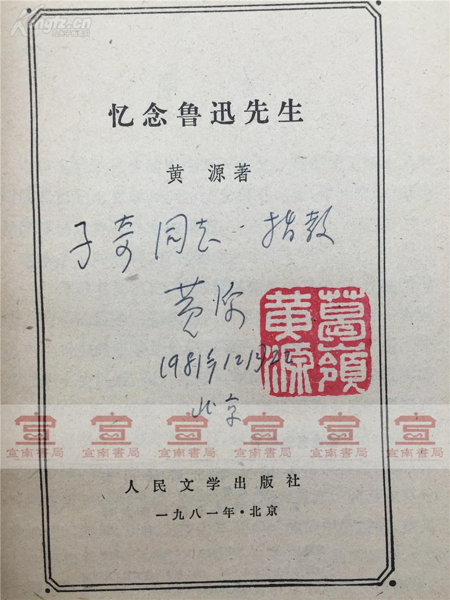 朱子奇旧藏:黄源签名本《忆念鲁迅先生》(