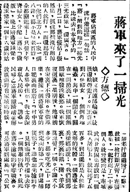 新四军扒路,中央军砍树\",\"鸡犬豕、马牛羊,