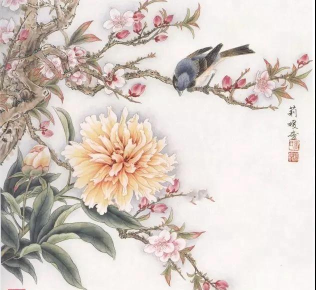 芍药花和鸟